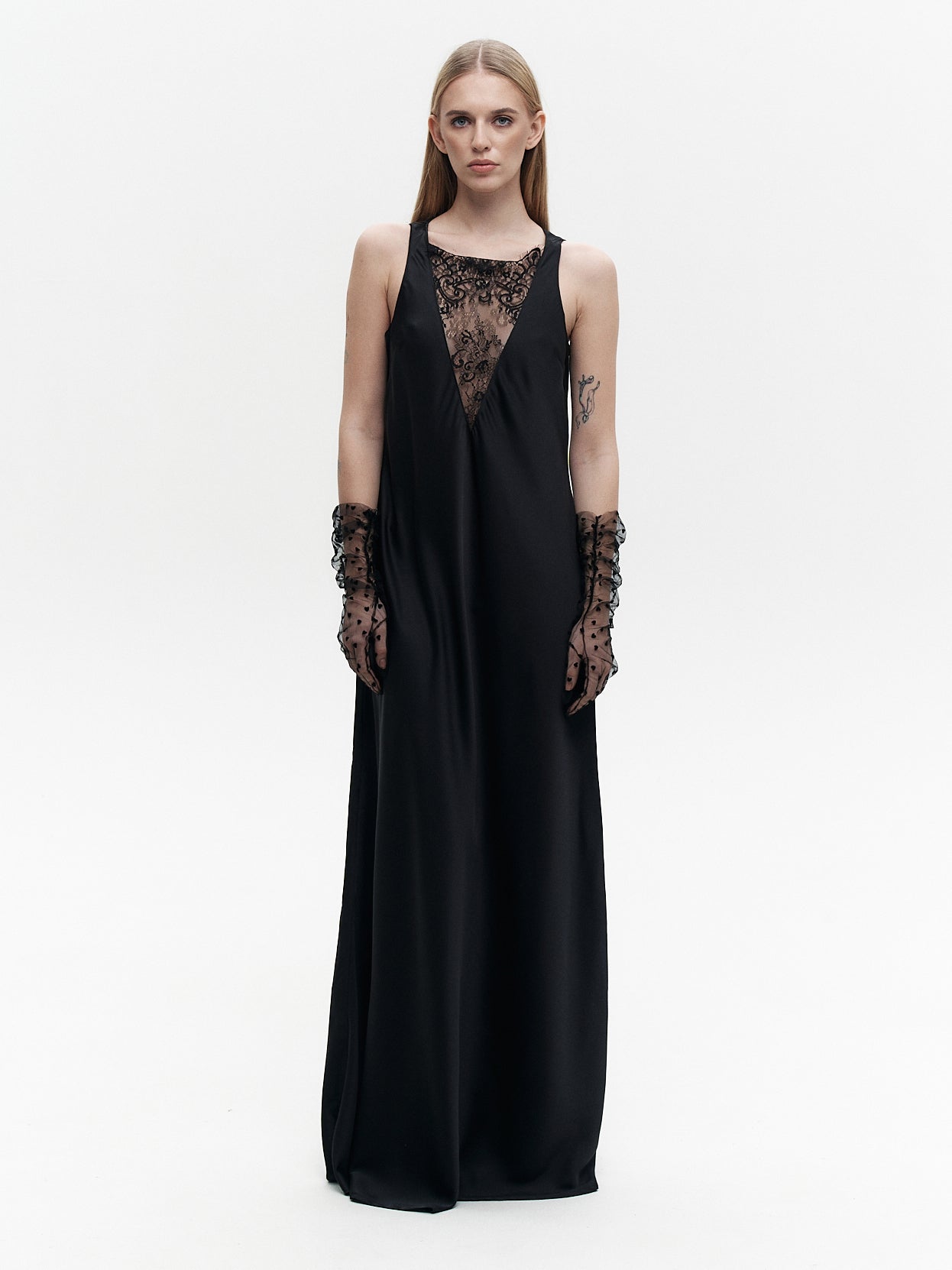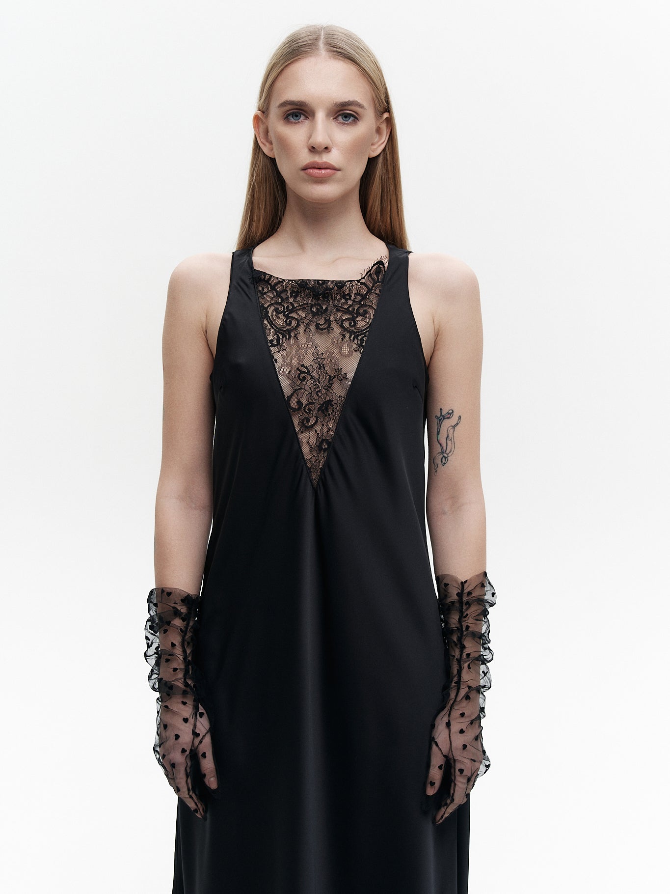 Fabrics - artificial silk / 100% polyester + Italian lace