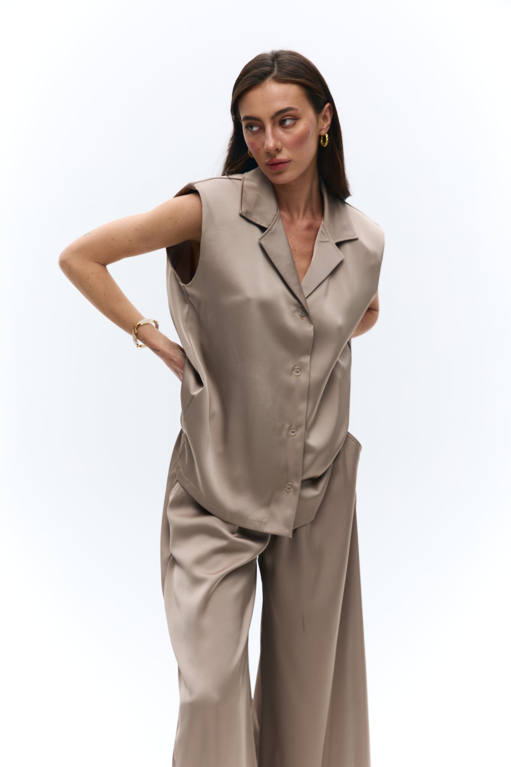 Experience ultimate comfort and elegance with our "Tenderness of touch" suit. Made from 100% silk, this suit features a short sleeved shirt and palazzo trousers, providing both style and breathability. Available in a variety of colors to suit your personal taste.